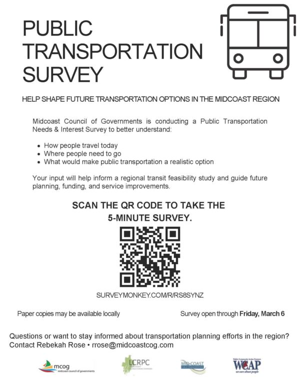 Midcoast Council of Governments is conducting a Public Transportation Needs & Interests Survey to better understand: